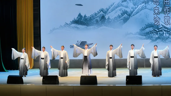 此次音乐党课坚持政治性、时代性、艺术性、实践性的创作原则,精心选取了《诗经》中的《鹿鸣》《关雎》《南山有台》等9首名篇,深入挖掘其中蕴含的丰富治国理政思想,以“讲授阐述+演绎呈现”的特色表现形式,为广大学员带来了一场沉浸式的视听与思想盛宴,引导学员深刻感受中华优秀传统文化的博大精深和独特魅力,汲取为政智慧、涵养为政之德,推动凝聚起奋力谱写中国式现代化山东篇章的强大精神力量。